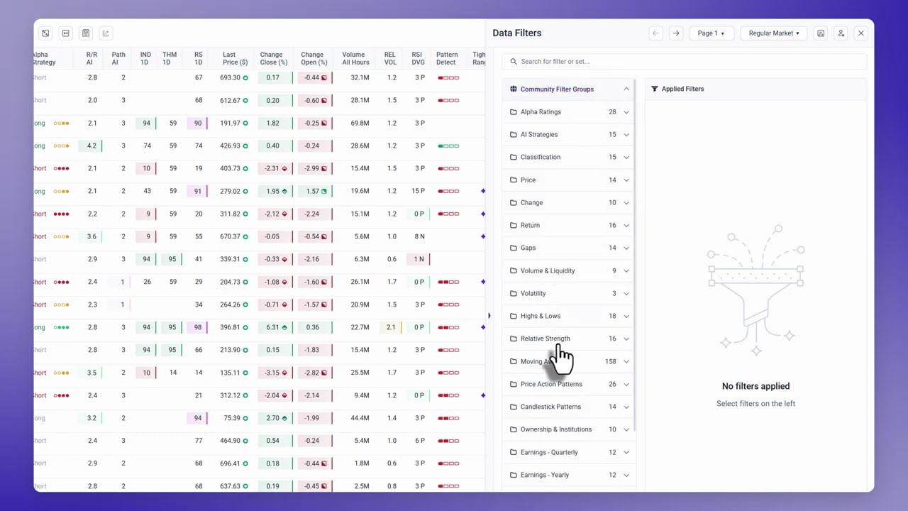 - The Tight Range at EMA20 screener profile under AI Setups, which focuses on liquid names in tight ranges sitting close to EMA20 with high risk/reward and low resistance