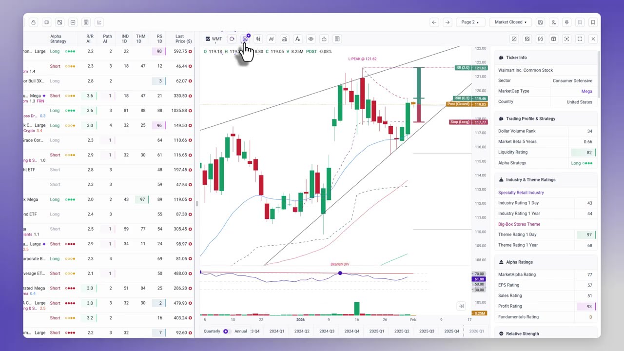 The Alpha Chart toolbar gives you full control over your visual experience. Whether you want to scan faster, declutter your layout, or keep your preferred overlays intact — everything is just one button away.